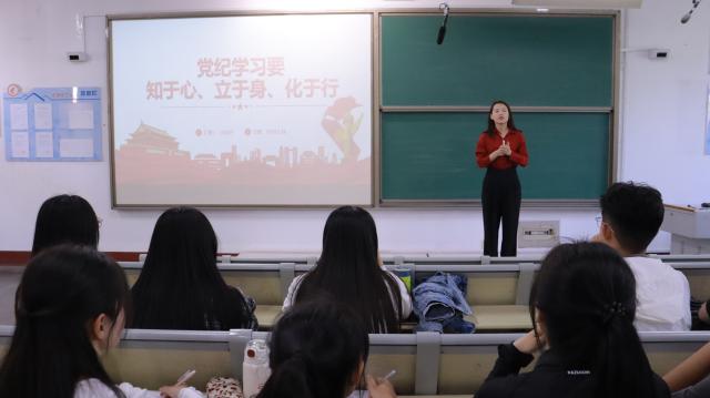 孙忠月从学深条例内容、悟透主旨要义、活用规定要求三方面展开,以“为什么要重新修订《条例》”为切入点,点明了《条例》对于加强党的纪律建设、推动全面深化改革纵深发展等方面发挥着重要的意义,强调了厘清党纪党规要求、掌握调整条例、熟悉新增条例对于立纪于心的重要性,并指出立纪于身需要将自身置于规矩当中,时刻保持对党纪的敬畏之心,只有做到知行合一、落到实处,才能提高执纪效果、更好发挥党纪作用,凝聚起全党全军全国各族人民大团结大联合大统一的磅礴力量。孙忠月表示,入党积极分子应持之以恒、坚持不懈地将党纪学习教育贯通于学习和生活中,结合实际情况理解党纪内涵、把握党纪要求,将铁的纪律“活化”为学习动力和行动指南、“活用”在日常习惯和自觉行动。