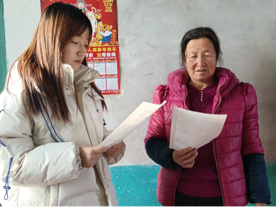 首先,志愿者们前往村委会了解当地乡村发展规划,并在乡村社区进行走访调研。志愿者们先采访了村庄中的老人,询问乡村这几十年的变化发展情况。老人表示乡村医疗服务能力提升,水泥路变成柏油马路,交通更加便利。接着,志愿者们采访村民对乡村变化的看法,村民回答到乡村的便民服务设施建设全面,给老年人、孩子提供了休闲娱乐的场所,并且乡村教育得到振兴,孩子不出村就可以解决上学问题。近几年,天然气、自动净水机逐渐在农村普及,给村民们送来了温暖。最后,志愿者采访村民在就医时的感受,村民表示足不出村就把病看、把病医,再加上乡村医保制度不断完善,就医费用减少,极大地帮助了村民看病治疗。