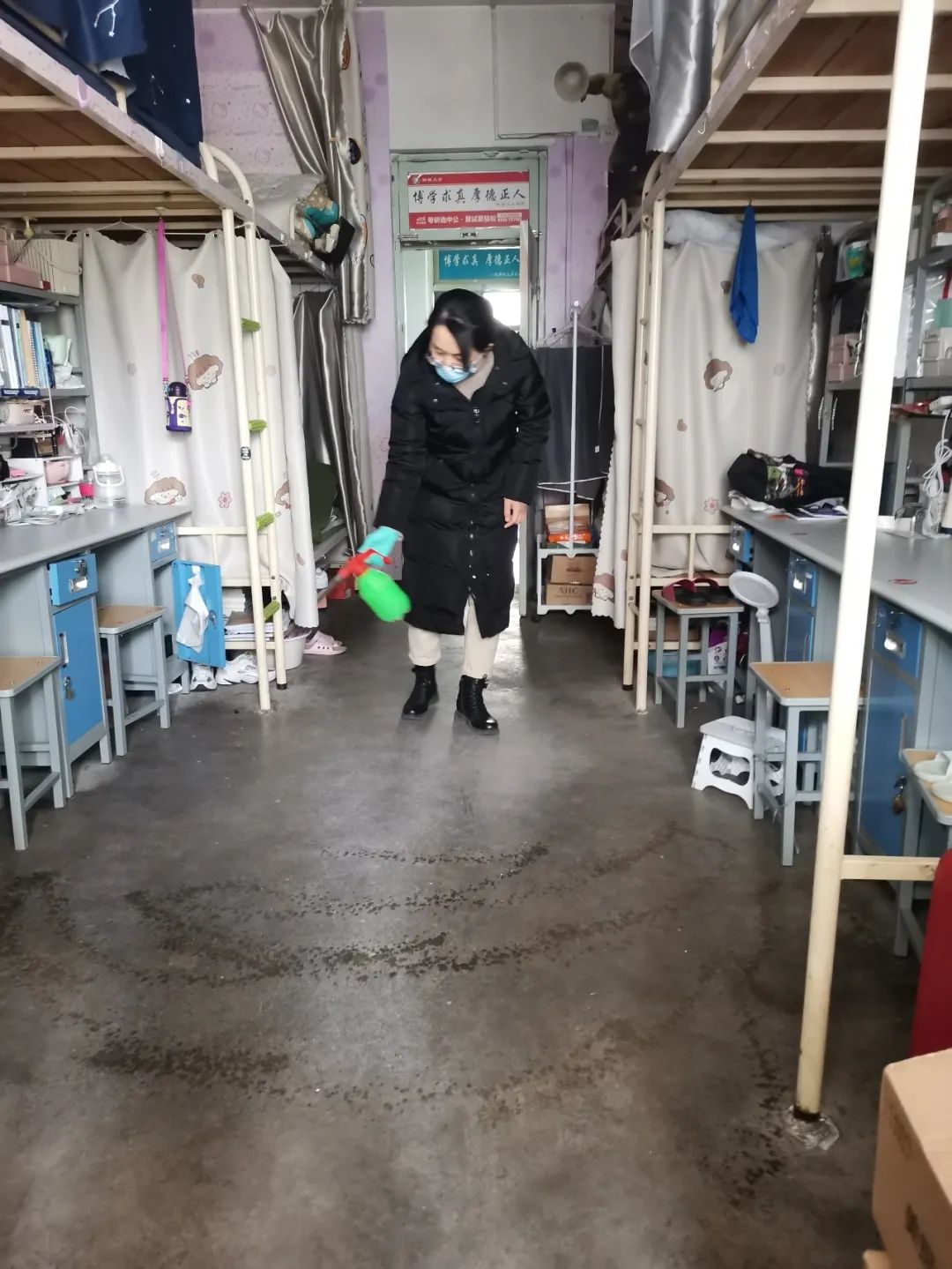 消杀、通风工作进行的同时,老师们还对宿舍安全进行了全方位的检查,针对学生用水用电隐患进行一一排查,为学生营造安全健康的生活环境,确保学生顺利开学复课。