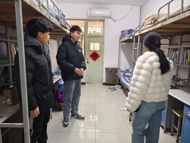学院构建“双线排查”机制:2月17-21日,宿舍服务部组建巡查小队,对群星15、16、18号楼实施网格化排查,重点对宿舍物品摆放、地面清洁、垃圾处理及通风情况等进行了细致排查,并针对个别宿舍存在的卫生死角、物品杂乱等问题提出整改建议。2月20日,由辅导员开展突击检查,重点围绕用电安全、卫生环境及违禁物品等方面,逐一对学生宿舍的电器使用规范、插排线路布局、应急通道通畅度进行细致摸排,全方位、无死角地掌握学生宿舍安全现状,确保不遗漏任何一处隐患风险点。
