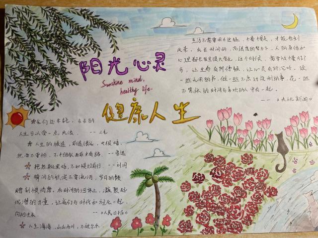 活动过程中,同学们通过网络、书本等材料搜集心理健康知识,并将其以绘画、文字的方式呈现在纸上,经过巧妙的构思,绘制出一份份色彩丰富、版面设计独特、卷面书写美观的有关心理健康知识的手抄报。这些手抄报充分展现出同学们积极向上的心理状态和丰富的精神世界。最后,评委们秉持公平公正公开的原则,从主题、版面设计、书写绘画以及内容等方面对作品进行量化打分,评选出优秀作品并进行展览。