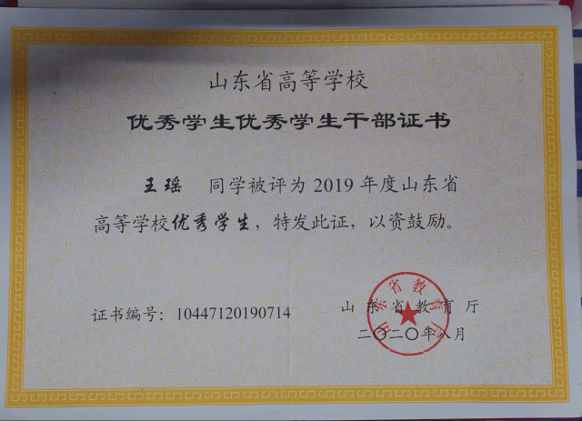2020.07 山东省高等学校“优秀学生”