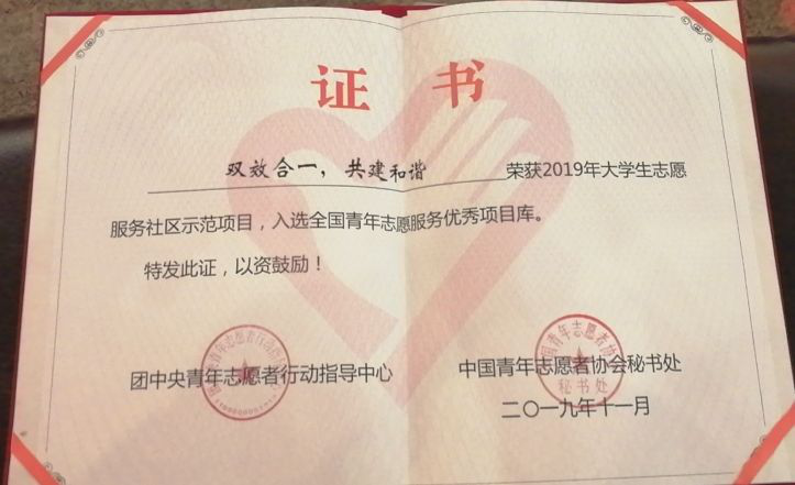2019.11 “双效合一,共建和谐”项目获批全国志愿服务社区优秀示范项目