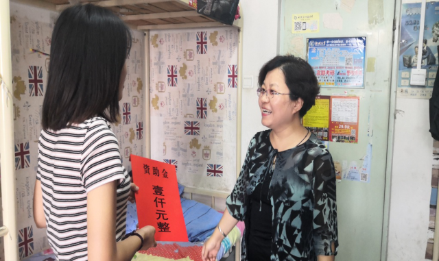 老师们亲切询问了同学们的返校情况以及在生活、学习方面的困难,亲手送上了资助金。老师向他们提出几点希望:第一,努力学习,自强自立;第二,提高自己的综合素质,争取全面发展。学生们对老师们的到来倍感激动,纷纷向老师诉说自己的假期生活,并向老师的关心与帮助表达感谢。