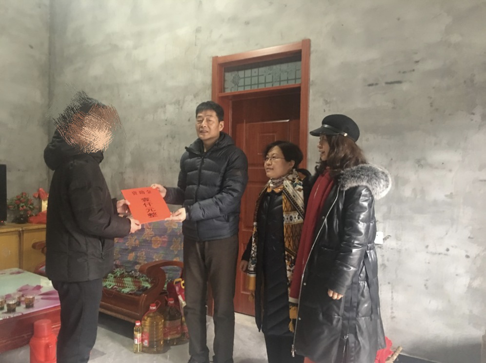 1、入户家访。活动进行的那天正是农历小年,由于天降大雾,能见度不足30米,原本2个多小时的路程,耗时4个小时才到达。老师们虽舟车劳顿,但毫无怨言,积极为家庭经济困难学生送去米、面等生活用品以及资助金,并深入和这些学生及家长进行了交流,及时、准确的了解学生的家庭和生活状况。正如宋兴民书记所说:我们教育学生,首先要了解学生,与学生建立一座心灵相通的爱心桥梁我们只有通过家访才能了解一些隐性的问题,找出学生不良行为形成的根本原因,这样我们可以从根源着手,进一步加强对学生的教育。
