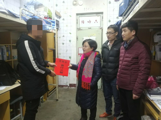 2、宿舍走访。走访工作小组对因勤工助学等原因留校住宿的家庭经济困难学生,深入学生宿舍进行走访慰问。走进学生宿舍,老师们详细询问了同学们在学习生活等方面的困难,细了解了学生家庭实际情况,并为他(她)们解答了在国家贫困资助政策和学校资助体系方面的疑惑,为他(她)们排忧解难,让同学们充分体会到了化院大家庭的温暖,拉近了师生间的距离。最后,老师们鼓励同学克服困难,在逆境中自强不息、刻苦学习。受访学生也表示对未来的生活和学习将会充满信心,好好学习,通过自身努力改变现状,争取以优异成绩报答学院和老师的关爱。