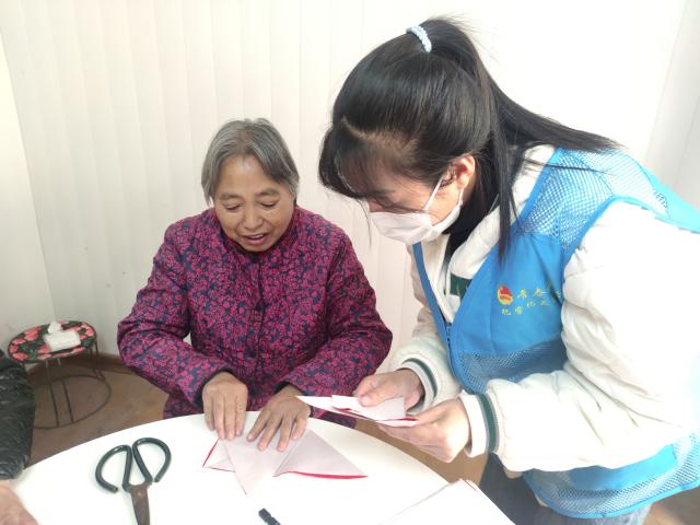活动准备阶段,志愿者们在社区采访老人对剪纸文化的了解并热情邀请老人们参与活动,老人们积极踊跃地配合志愿者们的工作。活动在老人们的热烈欢迎下拉开序幕,志愿者向老人们热情地介绍活动的主要内容、剪纸的发展历史以及剪纸文化的现状,让大家对剪纸这一民间艺术有更深一步的了解。随后,志愿者向老人们发放剪纸工具,带领老人们制作剪纸,在剪纸过程中老人们遇到许多问题,对此志愿者耐心细致地进行指导并不断鼓励他们,志愿者们边与老人交谈边制作剪纸,房间内其乐融融,热闹非凡,充满老人与志愿者们的欢声笑语。经过志愿者与老人们不懈坚持与努力,参加活动的老人们纷纷完成一副副优秀的剪纸作品,并切身体会到民间传统文化的魅力,剪出他们心中的新时代中国,剪出他们内心的希望以及美好期许。老人们纷纷表示感受到大学生们对他们的关爱,体会到闲暇时光的温馨与快乐,感受到传统文化的魅力,他们的脸上洋溢着灿烂的笑容。最后,老人们和志愿者一起拍照留念,本次活动在大家的欢声笑语中落下帷幕。志愿者们也纷纷发表感想,经过此次活动更加深刻地体会老人群体的生活状况,深深感受到传统文化的独特魅力,更切实地体会到自己作为志愿者的意义和价值。