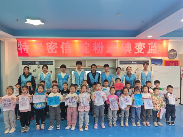 淀粉逢碘蓝呈秘,化学启思慧绽光。本次活动的成功举办,不仅培养了幼儿园同学的科学思维和探索精神,增强了他们学习的积极主动性和创造能力,而且使他们直观感受到化学的魅力,为其在科学探索的道路上打下了坚实的基础。