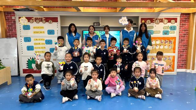 活动伊始,志愿者以我国核能的发展情况为开篇,向小朋友们系统讲解了核能发电的原理与我国能源发展策略,展现了国家雄厚的科研实力,志愿者还列出许多科研工作者突破险阻、无私投身科学事业的光荣事迹,使小朋友们对“爱科学、学科学、强祖国”的真谛有了更清晰的认识。手工制作环节,在志愿者的耐心指导下,小朋友们充分发挥想象力和动手力,利用黏土、吸管等材料制作“小花”手工作品,活动现场充满了欢声笑语。
