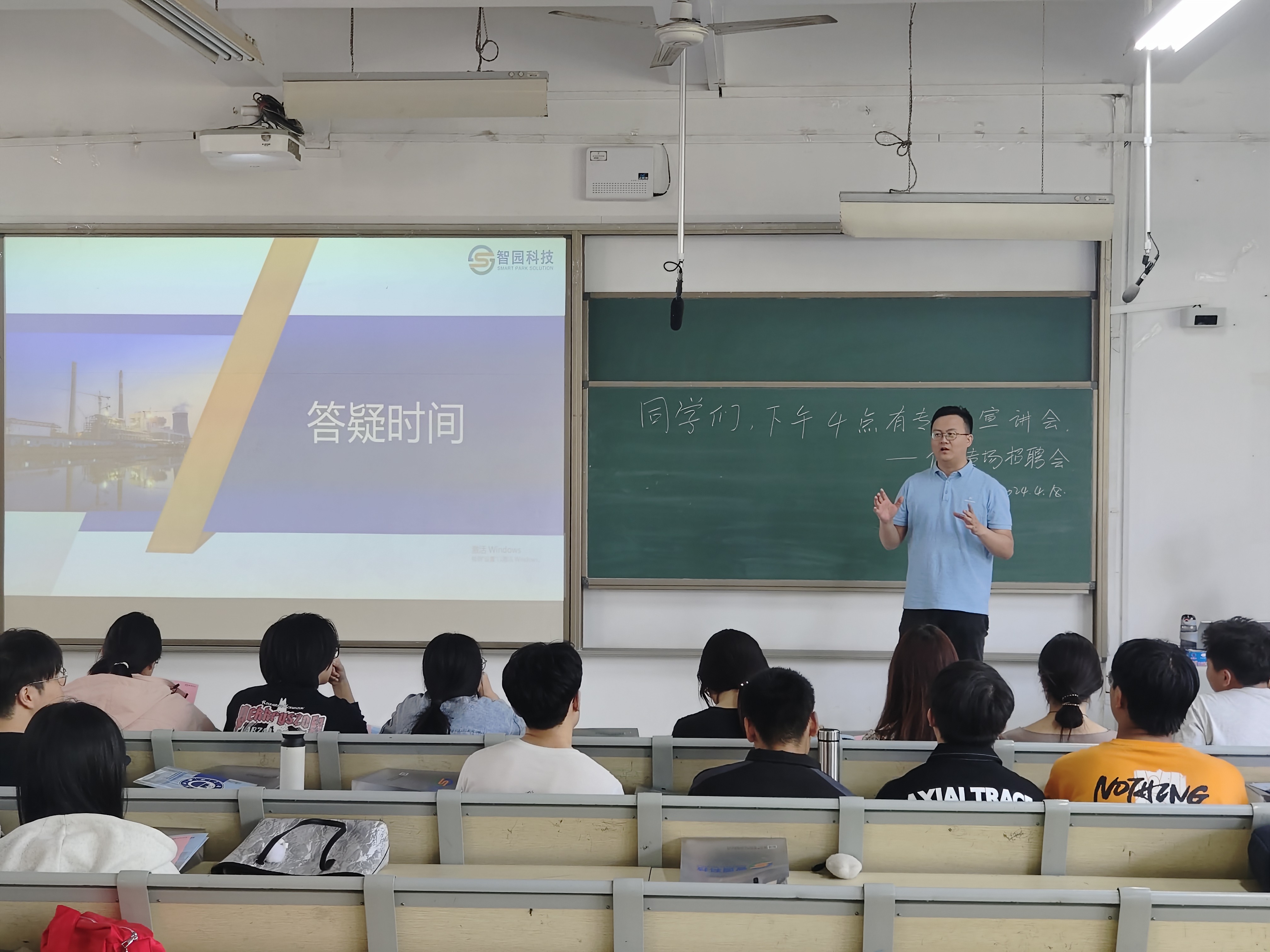 宣讲会上,主讲人员围绕企业文化、招聘选择、招聘岗位职责及要求、招聘流程等方面展开讲解,介绍了企业的优势发展方向、核心竞争力以及丰富的服务案例,重点解读了企业的相关招聘信息,如岗位职责、应聘方式、基本要求以及招聘流程等,并鼓励同学们积极准备应聘面试,把握好每一次机会,充分展示自己的才华和潜力,保持积极的心态和自信的态度,面对人生中的竞争和挑战。宣讲会现场气氛热烈,同学们踊跃发言提问,主讲人热情地为同学们解答了关于公司业务、暑假实习、住宿、餐补等方面的问题。同学们纷纷表示通过此次宣讲会,对智慧化工行业有了更加深刻的了解,为他们未来职业规划提供了帮助。